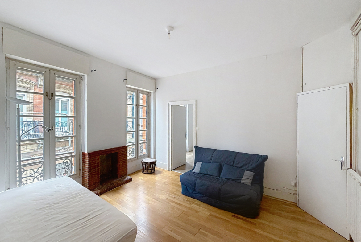 Dans un petit immeuble toulousain, appartement de type 3 au 1er étage, d’une surface de 55m2, traversant.