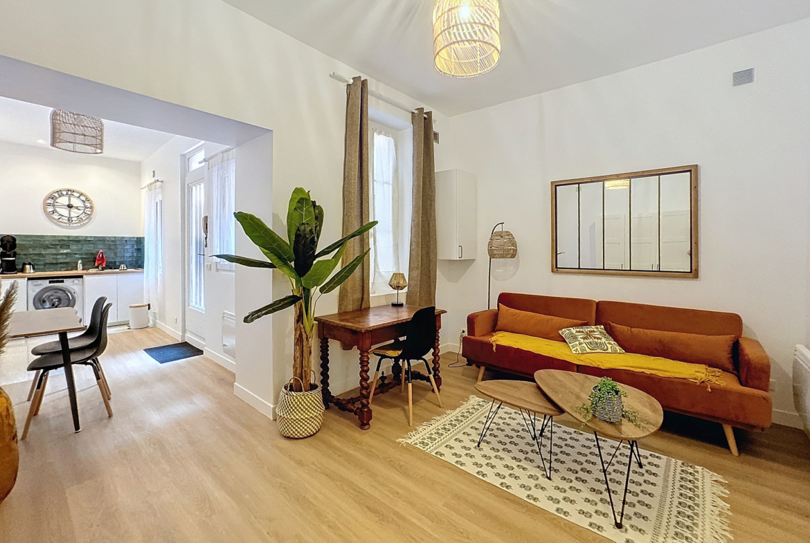 Au sein d’un petit immeuble niché dans une rue calme à deux pas de la place Jeanne d’Arc, venez découvrir ce bel appartement de type 1bis en rdc donnant sur une cour au calme, comprenant un cuisine équipée, un bel espace de vie avec coin nuit et une salle d’eau séparée avec wc.