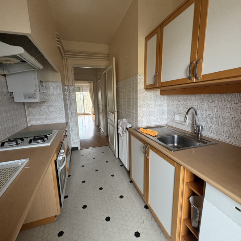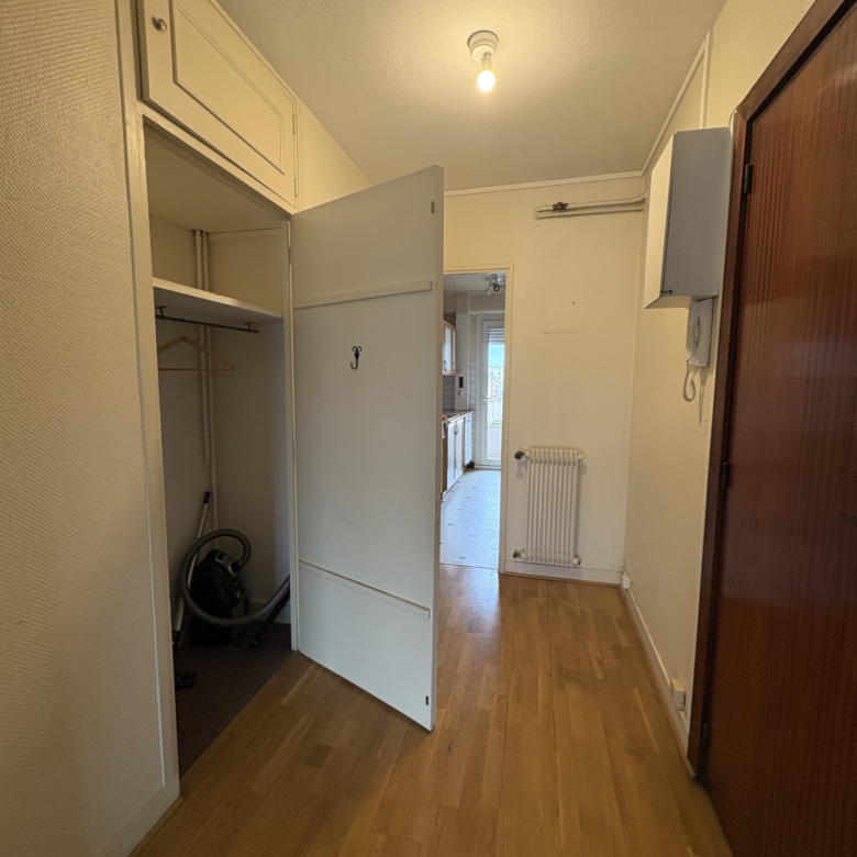 L’appartement est composé d’une entrée avec placard, d’un séjour avec accès à un balcon spacieux, d’une cuisine séparée et aménagée avec accès à un petit balcon, dun couloir desservant une salle d’eau, une chambre et un WC séparé.