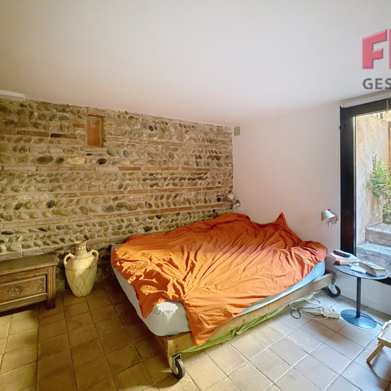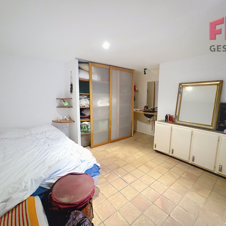Un escalier permet d’accéder à deux autres chambres au frais, détenant une salle de bain pour l’une et un point d’eau pour l’autre.