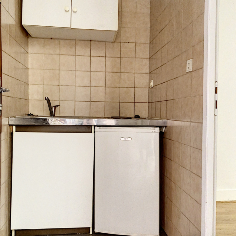 Appartement 1 pièce de 15 m2 situé au 1er étage d’une petite résidence, comprenant : une pièce principale avec coin kitchenette, et une salle d’eau avec WC.