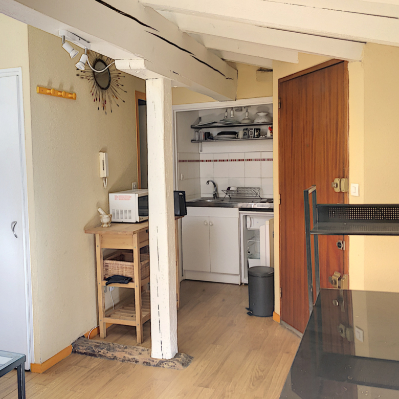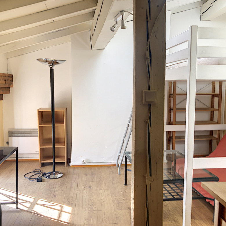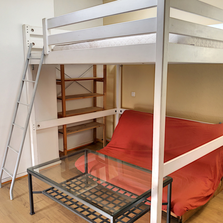 L’appartement est composé d’une pièce principale avec un coin nuit grace un lit mezzanine, un coin bureau, un coin séjour, d’un coin cuisine et d’une salle de bains avec wc.