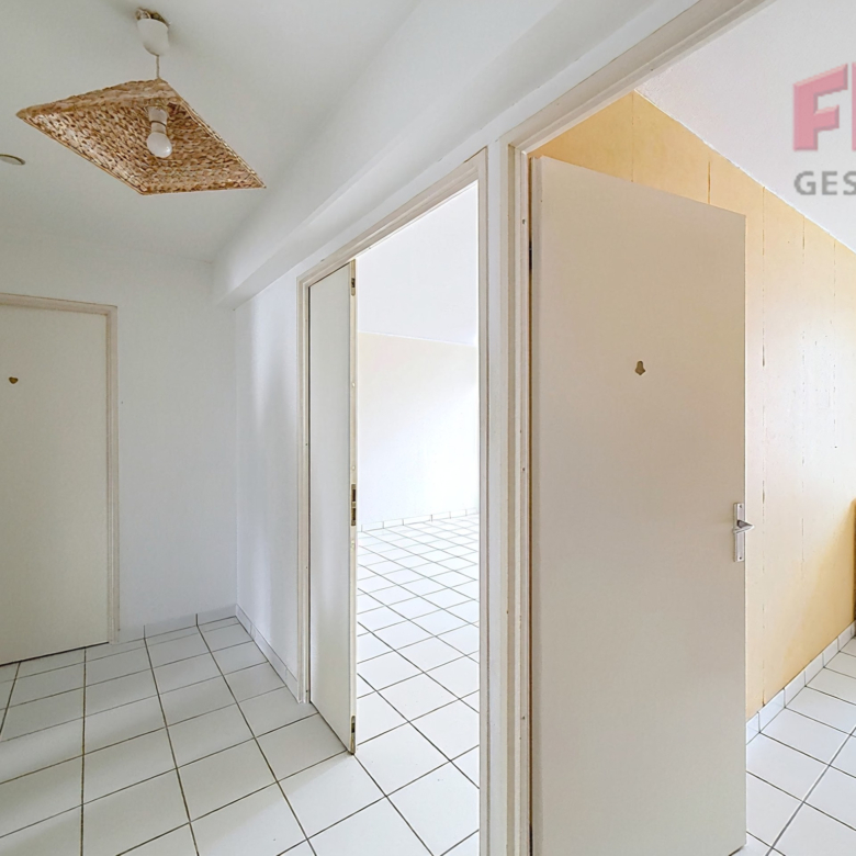 Il se compose d’une grande entrée, une cuisine séparée donnant sur le balcon, un grand séjour avec accès également sur le balcon, une salle de bain, wc séparés et deux chambres avec rangements.