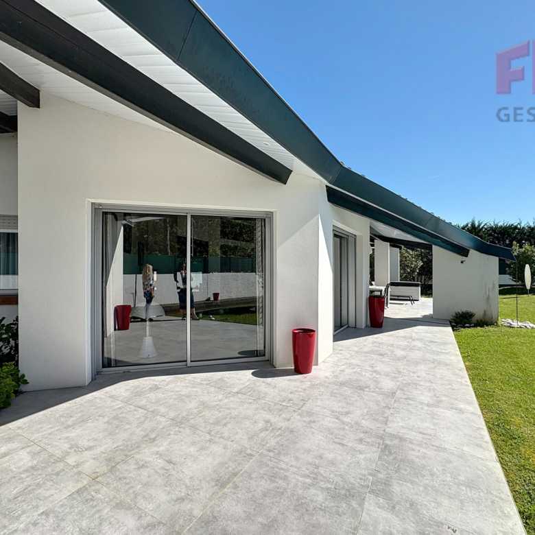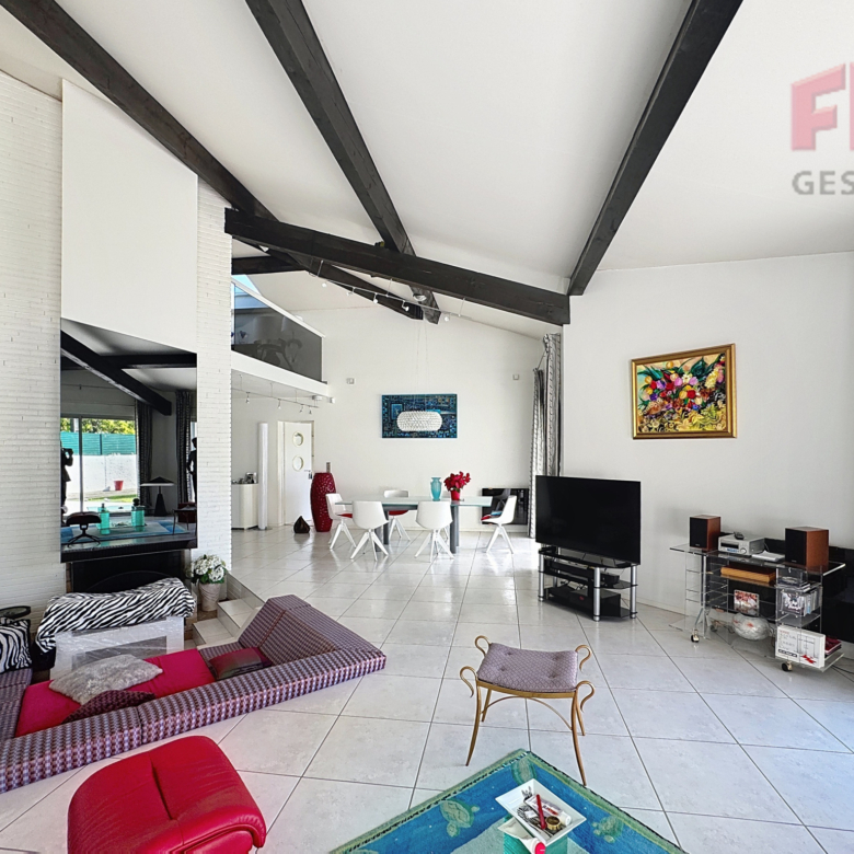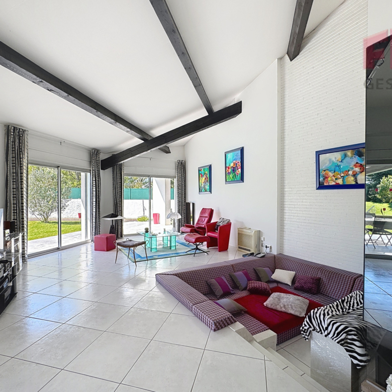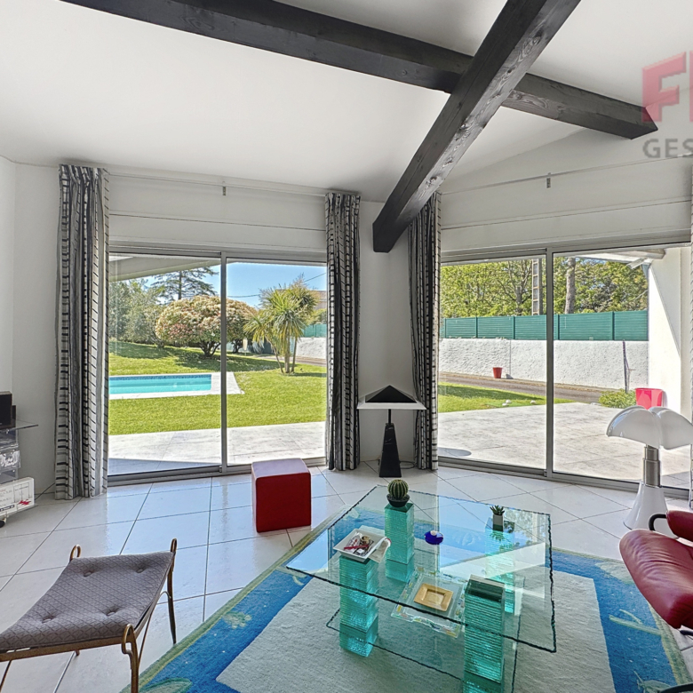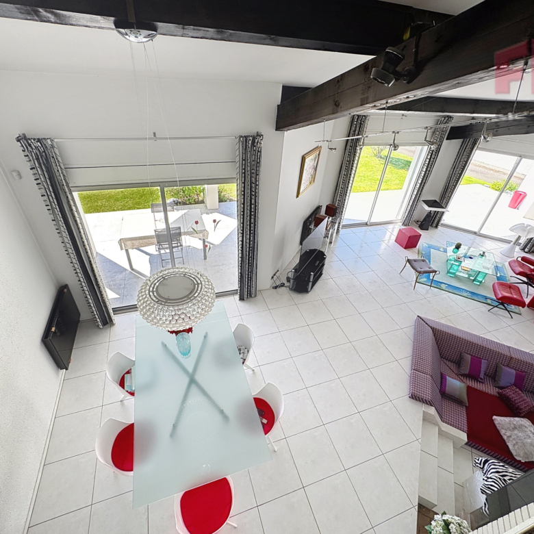 Vous bénéficierez d’un séjour spacieux avec une belle hauteur sous plafond, ouvrant directement sur la terrasse et la piscine.