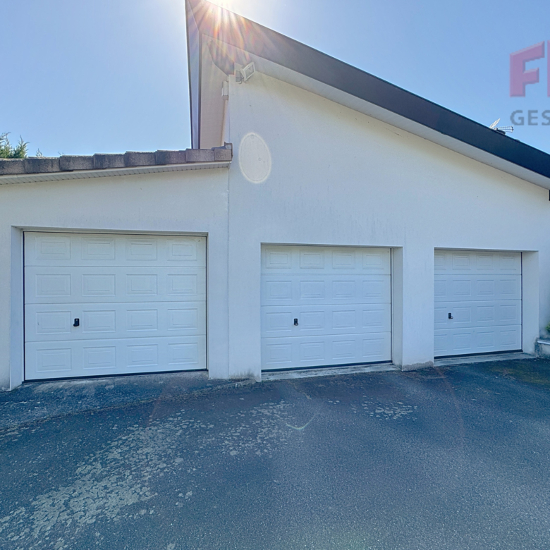 D’une surface habitable de 176 m2, elle se compose de deux parties distinctes : une partie garage comprenant trois garages indépendants, et une partie habitation répartie sur deux niveaux.